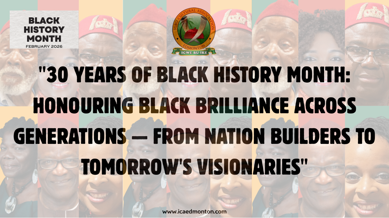 This Black History Month must not be about nostalgia alone, but about intention. It must move us to invest in education, entrepreneurship, and civic leadership, thus building systems where Black excellence is not the exception, but the expectation. As we mark this 30th anniversary, let it be a renewed commitment to intergenerational partnership and shared responsibility. In that spirit, the Igbo Cultural Association of Edmonton will, throughout this month, spotlight daily the visible and often unspoken successes of our members: stories of resilience, leadership, quiet sacrifice, and impact that affirm that Black brilliance lives among us every day.
